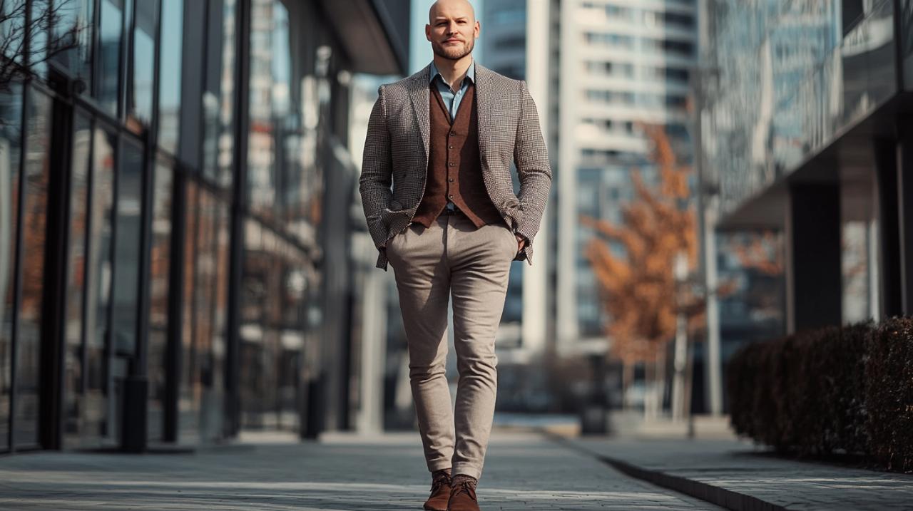 Lorsque l'on est chauve, le regard se porte naturellement davantage sur l'ensemble du visage et du corps. Cette particularité rend la coupe des vêtements absolument essentielle pour créer une silhouette équilibrée et élégante. Les pièces trop amples donnent une impression de négligence et rompent l'harmonie visuelle, tandis que les vêtements trop serrés créent un effet contre-productif qui attire l'attention sur les mauvaises zones.
